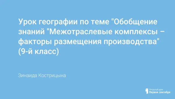 Урок проводится в качестве обобщения в 9-м классе, после изучения всех отраслей промышленности. В ходе урока учащиеся занимаются географическим моделированием, т.е. выбирают место для своего предприятия с учетом тех условий, которые имеются в этом районе. При этом им приходится вспоминать теоретический материал и применять его на практике, а затем уметь правильно обосновать выбор места для своего проекта.