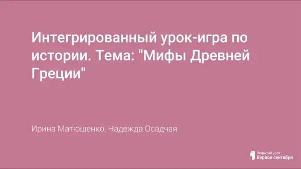 Интегрированный урок-игра по истории. Тема: "Мифы Древней Греции"