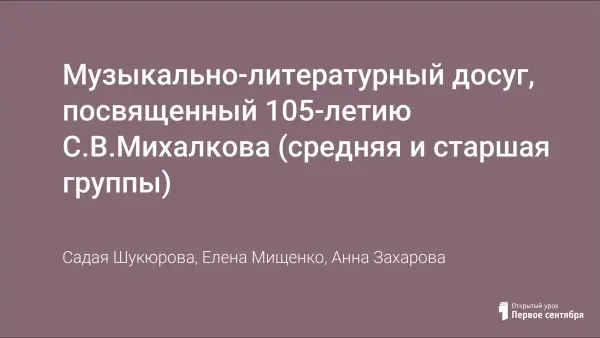 Музыкально-литературный досуг, посвященный 105-летию С.В.Михалкова (средняя и старшая группы)