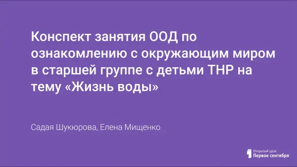 Конспект занятия ООД по ознакомлению с окружающим миром в старшей группе с детьми ТНР на тему «Жизнь воды»