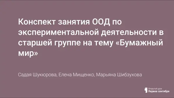 Конспект занятия ООД по экспериментальной деятельности в старшей группе на тему «Бумажный мир»