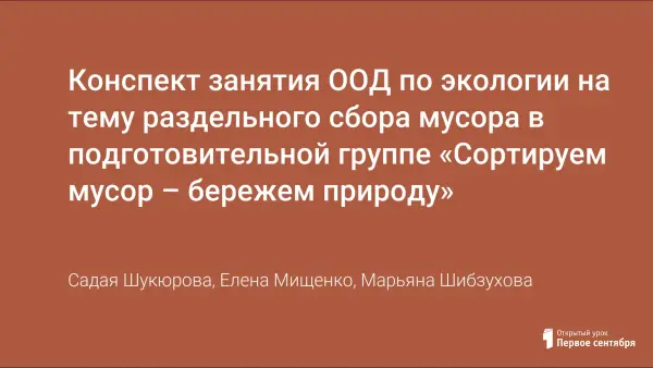 Цель занятия: закрепить и расширить знания детей о правилах поведения на природе, о проблемах утилизации мусора.