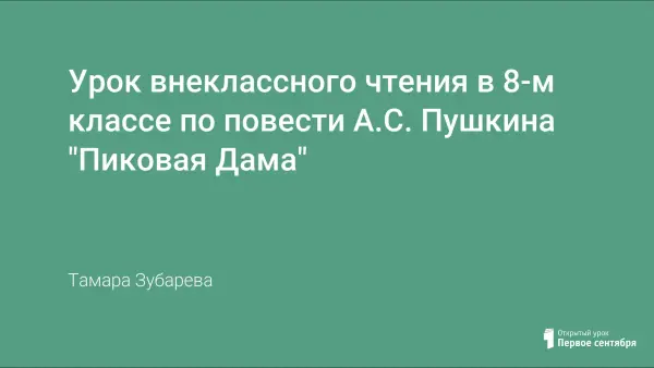 Урок внеклассного чтения в 8-м классе по повести А.С. Пушкина "Пиковая Дама"