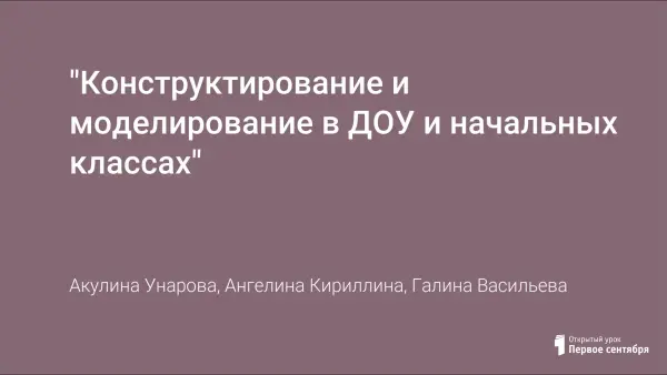 "Конструктирование и моделирование в ДОУ и начальных классах"