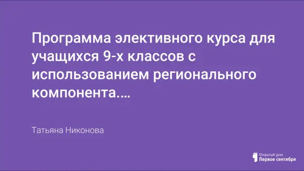 В статье приведен примерный учебно-тематический план курса и контрольные материалы.