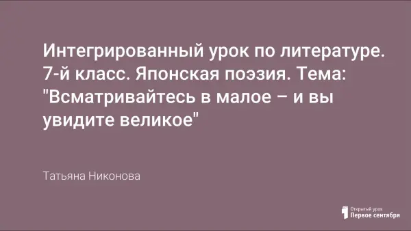 Урок из системы уроков «Зарубежная литература» в программе 7-го класса. Сравнительно-сопоставительный анализ музыки, живописи, поэзии русского и японского народа позволяет обучающимся выступить в роли исследователей, самостоятельно выявить сходство и различие двух культур.