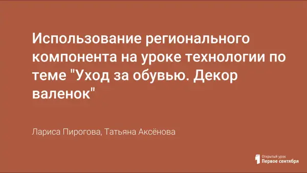 Использование регионального компонента на уроке технологии по теме "Уход за обувью. Декор валенок"