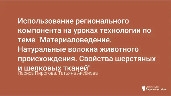 Использование регионального компонента на уроках технологии по теме "Материаловедение. Натуральные волокна животного происхождения. Свойства шерстяных и шелковых тканей"