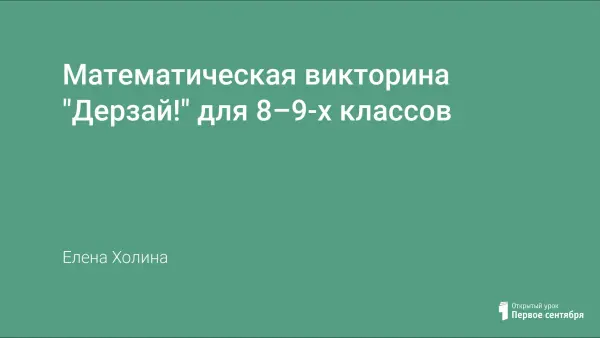 В статье предложена математическая викторина, которая может быть проведена во внеурочное время. В игре участвуют 4 команды по 5 человек, остальные являются болельщиками. Проводить викторину помогают учащиеся 10-го класса. Членами жюри являются учащиеся 10-го класса.