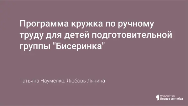Программа кружка по ручному труду для детей подготовительной группы "Бисеринка"