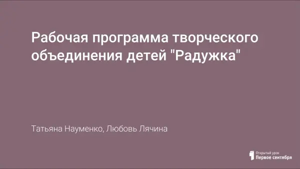 Рабочая программа творческого объединения детей "Радужка"
