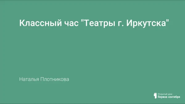 Данная форма классного часа развивает интерес к истории театров г. Иркутска, развивает умение работать с дополнительной литературой, выступать перед аудиторией, направлен на развитие творческих способностей учащихся, развитие навыков общения. Классный час предназначен для учащихся 5—8-х классов.