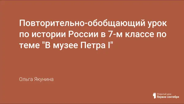 Предлагаемый урок является заключительным и обобщающим в блоке "Эпоха Петра I". Форма занятия преследует цель не только систематизировать знания учащихся, но и включить их в поисковую деятельность, дать ребенку возможность проявить себя, сыграв определенную роль. Урок в форме ролевой игры позволяет глубже пережить изучаемые события и ведет к более детальному запоминанию материала.