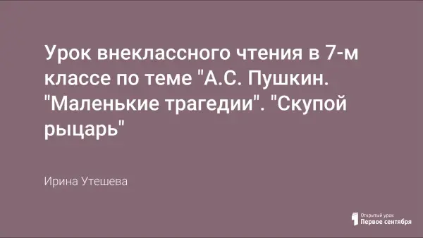 Изучение данной драмы выводит на серьезный разговор об идейном содержании произведения, о том, насколько важно понимать творческий замысел писателя, позволяет познакомить учеников с особенностями стиха и стиля поэта, композиции драматического произведения. Можно не только выразительно по ролям читать трагедию, но и попробовать инсценировать некоторые её эпизоды.