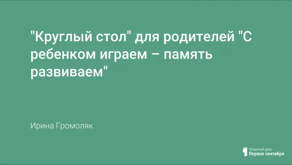 Цель «Круглого стола» – познакомить родителей с особенностями памяти дошкольников, способами тестирования произвольной памяти; дать практические рекомендации по развитию памяти ребенка в домашних условиях.