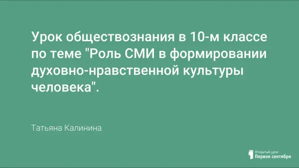 Урок подводит учащихся к пониманию возрастающей роли СМИ на формирование духовно-нравственной культуры человека и всего общества в целом. На уроке определяются положительное и отрицательное влияние СМИ на человека, формулируются выводы о проблемах информационного воздействия на общество.