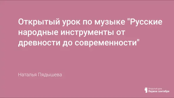 Урок способствует формированию знаний в области истории русских народных инструментов, развивает творческие способности и воображение, воспитывает патриотические чувства. Материал подобран в соответствии с методическими рекомендациями и с учетом возрастных особенностями учащихся.
