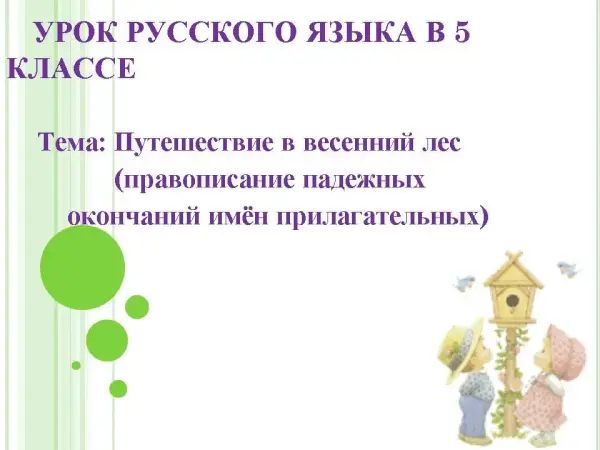 Урок русского языка "Путешествие в весенний лес" (правописание падежных окончаний имён прилагательных: обобщение изученного). 5-й класс