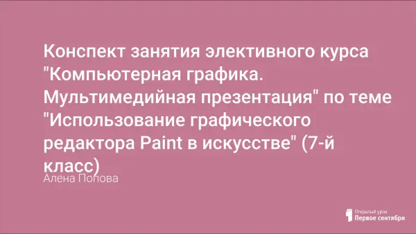 Данный урок является интегрированным с уроками изобразительного искусства. Направлен на отработку умений учащихся работать в графическом редакторе Paint, а также на привитие учащимся чувства прекрасного — на данном уроке учащимся предлагается материал о различных видах искусства.