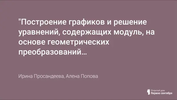 "Построение графиков и решение уравнений, содержащих модуль, на основе геометрических преобразований и в среде MS Office Excel". Интегрированный урок (математика + информатика)