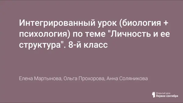 В разработке урока по курсу биологии для 8-го класса по теме "Личность и ее структура" предложены формы работы (работа в малых группах, сообщения, психологические упражнения), направленные на формирование знаний о личности, ее структуре и особенностях, типах темперамента.