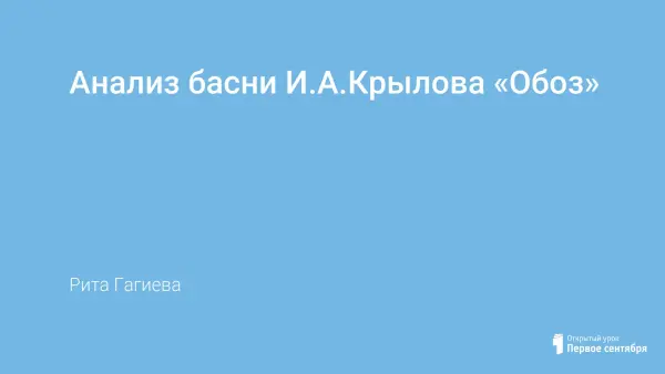 Цели урока: расширить знания учеников о баснописце и его баснях; проанализировать басню И.А.Крылова «Обоз» с точки зрения композиционных особенностей, увидеть, как отражает Крылов в басне политическую ситуацию того времени (критика вмешательства императора Александра I в стратегию и тактику Кутузова в Отечественной войне 1812 года), актуальность басни, ее воспитательное значение.