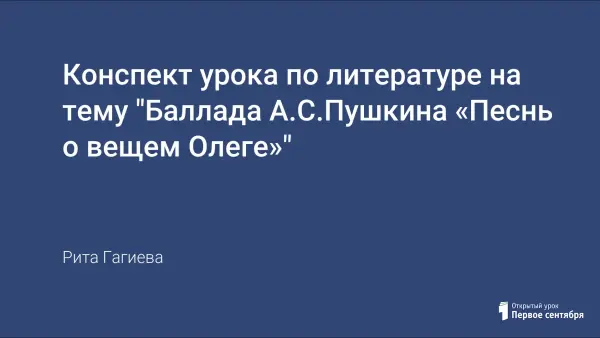 Цели урока: познакомить учащихся с балладой А.С.Пушкина «Песнь о Вещем Олеге»; выйти на основную проблематику баллады; найти ответ на вопрос: история и современность; углубить представление учащихся о летописном источнике баллады; практическая работа по нахождению средств художественной выразительности; прививать любовь к чтению исторической литературы о Русской земле.