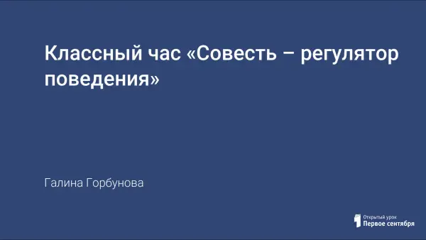Классный час подготовлен для студентов-первокурсников. Тема мероприятия никогда не потеряет своей актуальности, что подтверждается примерами из произведений XIX–XX веков. Совесть делает нас людьми. Без совести нет сожаления, без сожаления нет морали, без морали нет ограничений, без ограничений нет закона, без закона общество развалится – такой вывод делают участники мероприятия.
