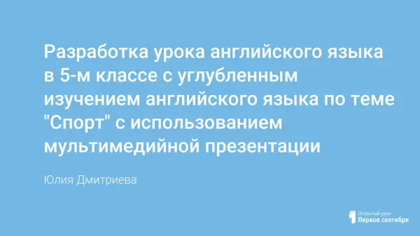 Урок с использованием мультимедийной презентации по теме "Спорт" является уроком комбинированного типа - введения нового материала и обобщения старого. Он развивает познавательный интерес, творческую и мыслительную деятельность учащихся; учит их бережно относиться к своему здоровью. Использование презентаций на уроках способствует повышению мотивации к изучению иностранного языка.