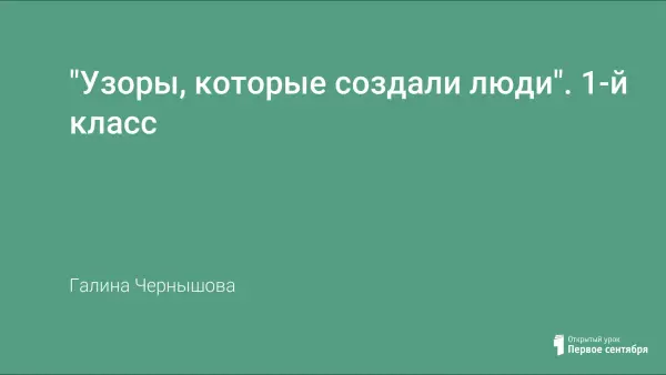 Урок «Узоры, которые создали люди» проводится в 1-м классе по программе «Изобразительное искусство» Б.М. Неменского в блоке «Ты украшаешь». На уроке закладываются основы понимания роли декоративной художественной деятельности в жизни человека. Дети вместе с Мастером Украшения учатся любоваться красотой природы, знакомятся с основами композиции, приобретают опыт работы в технике лепки цветным пластилином.