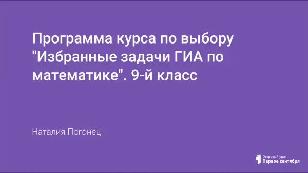 В данном курсе по выбору представлена программа, в которой рассматриваются темы для повторения и углубления при подготовке к ГИА в 9-м классе по математике. В приложениях используются задачи из открытого банка задач ГИА по математике, также предоставлены в помощь из интернета презентация «Опорные конспекты» по темам за 7-9 классы и книга «ГИА 2012 по математике для «чайников»: советы репетитора». Тематические задания подобраны для 7-9-х классов.