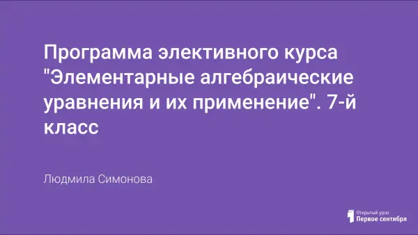 Цель курса - прояснить и дополнить школьный материал, связанный с уравнениями, с системами уравнений, представить систематизацию уравнений по видам, по степени сложности.