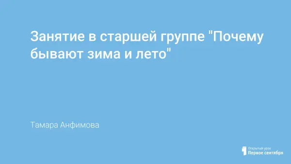 Занятие направлено на расширение знаний детей и представлений о зависимости смены времен года от положения Земли по отношению к Солнцу. Учащиеся определяют признаки времен года и учатся передавать их в рисунках.
