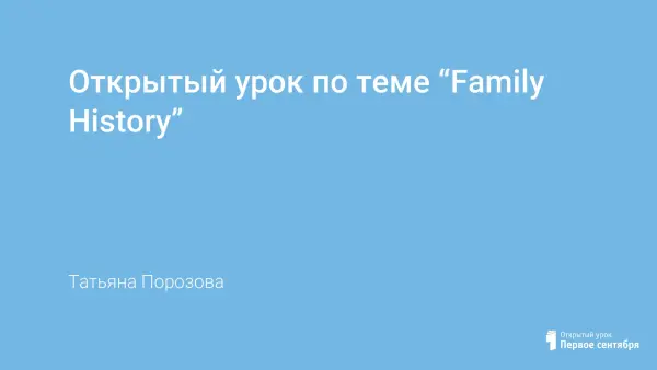 Представлена презентация к открытому уроку по английскому языку. Тема урока: “Family History”.