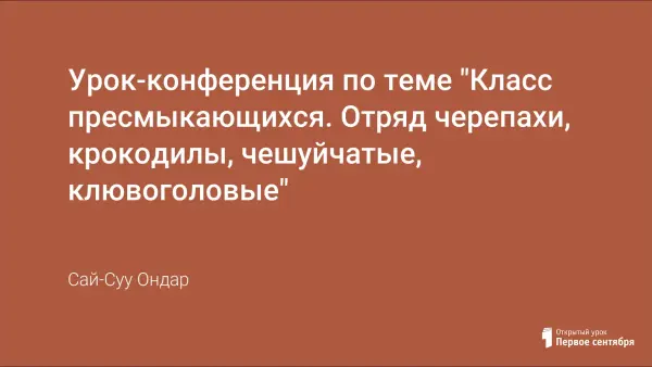 На уроке синтезируются знания учащихся по классу пресмыкающихся. Урок развивает творческие способности учащихся, мышление, речь, слух. На данном уроке реализуется тема самообразования "Самостоятельная работа на уроке биологии как средство развития индивидуальных способностей". Учит беречь животных.