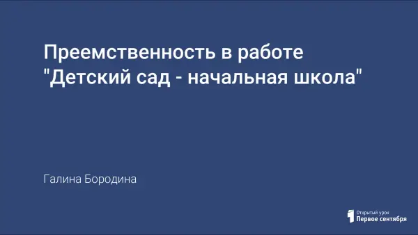Преемственность в образовании рассматривается как одно из условий непрерывного образования, основной целью которого выступает развитие каждого ребенка, охрана и укрепление его психического, физического и нравственного здоровья. Связь школы с детским садом осуществляется созданием совместного плана работы по осуществлению преемственности; взаимопосещения занятий в детском саду и уроков в школе; проведения совместных совещаний и выработки рекомендаций.