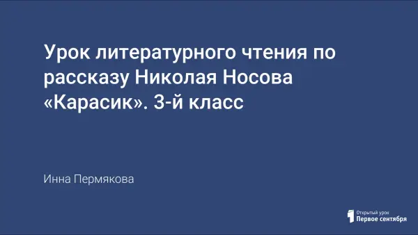 Цель: знакомство с новым литературным произведением Николая Носова «Карасик».