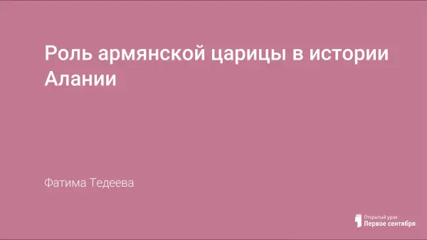 Цель работы: изучить образ армянской царицы Сатиник и показать её принадлежность к царскому роду Алан.
