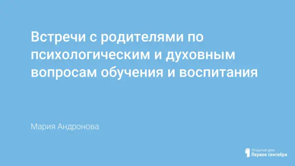 В 2022–2023 учебном году педагог-психолог ЧОООУ «Православная гимназия во имя свт. Филарета Московского» Андронова М.В. стала инициатором проведения ряда встреч с родителями учащихся начальных классов. Темы для обсуждения выбирались исходя из актуальности проблем обучения и воспитания в рамках образовательных особенностей учебного заведения. Первая встреча носила название: «Хотим ли мы, что б гимназия воспитывала наших детей в духе Православной веры».