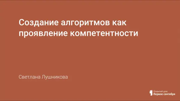 Компетентность – это способность к решению проблем, умение трансформировать собственные знания для выполнения поставленной задачи. Эта способность формируется только в деятельности творческого характера, одним из видов которой является создание алгоритмов.