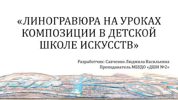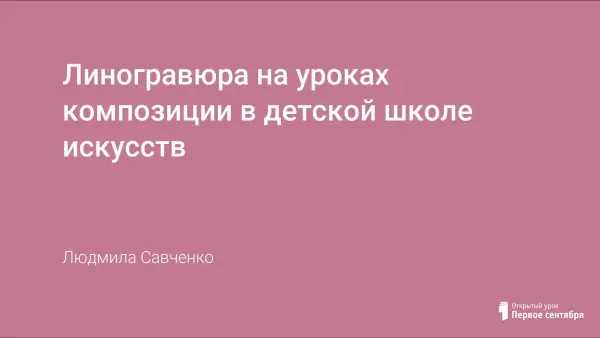 На данном занятии, в рамках учебного предмета «Композиция графическая», учащиеся 3-го класса учатся трансформировать изображение в стилизованные формы и изучают возможности графической техники печатной гравюры (линогравюры) в условиях детской школы искусств (художественной школы). Учащиеся ведут поисковую работу и готовят сообщения по заданной теме. В практической части урока дети поэтапно выполняют линогравюру, от эскиза до оттиска. Процесс занимает несколько занятий. Сначала учащиеся выбирают образ, затем, стилизуют его, выполняя эскиз в тоне. Далее, линейный рисунок переводится в зеркальном отражении и переносится на линолеум (доску). С помощью штихелей вырезается изображение и на готовую рабочую доску наносится краска для создания оттиска. Таким образом, дети, знакомясь с разными видами печатной гравюры, приобщаются к графическому искусству, создавая свои графические листы.