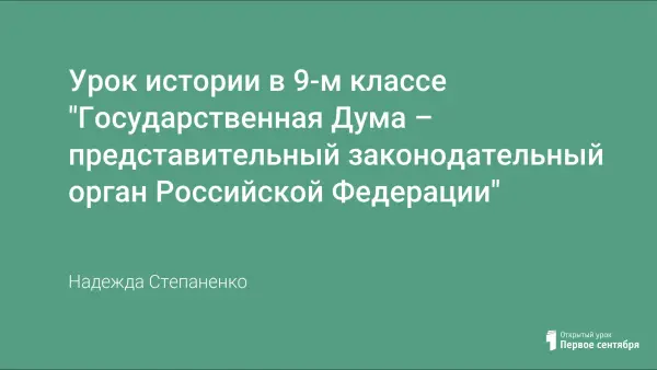 Урок истории в 9-м классе "Государственная Дума – представительный законодательный орган Российской Федерации"