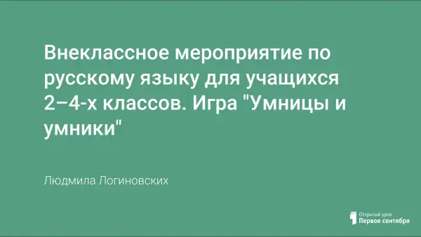Внеклассное мероприятие по русскому языку для учащихся 2–4-х классов проводится в конце предметной недели по русскому языку. Форма мероприятия - игра "Умницы и умники". Подобраны разнообразные, интересные задания, которые требуют от учащихся смекалки, знания правил и устаревших слов. Цель мероприятия: воспитание любви к русскому языку.