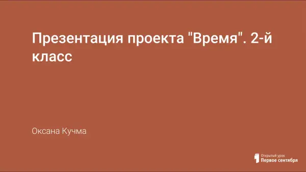 Проект «Время» выполнен учениками 2-го класса. Работа над проектом велась в течение трех месяцев и была нацелена на активизацию и актуализацию знаний, полученных школьниками при изучении темы «Время», систематизацию знаний, ознакомление с комплексом материалов, заведомо выходящим за пределы школьной программы. Перед школьниками ставилась задача создать продукт, востребованный другими.