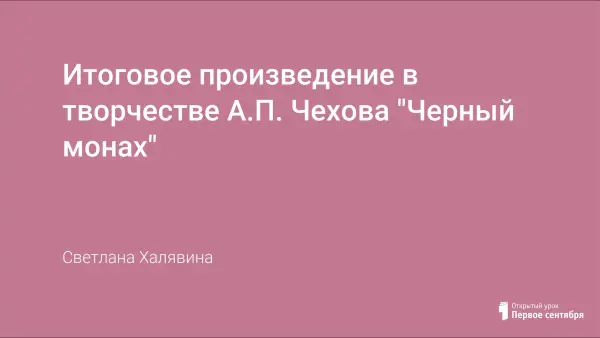 В работе предпринята попытка анализа рассказа «Чёрный монах». Высказан ряд предположений, некоторые из которых текстуально подтверждены. Выдвинут тезис о том, что «Чёрный монах» - итоговое произведение в жизни и творчестве А.П. Чехова. Собраны воедино некоторые мотивы его произведений, художественные и авторские детали.