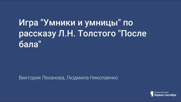 Игра "Умники и умницы" по рассказу Л.Н. Толстого "После бала"