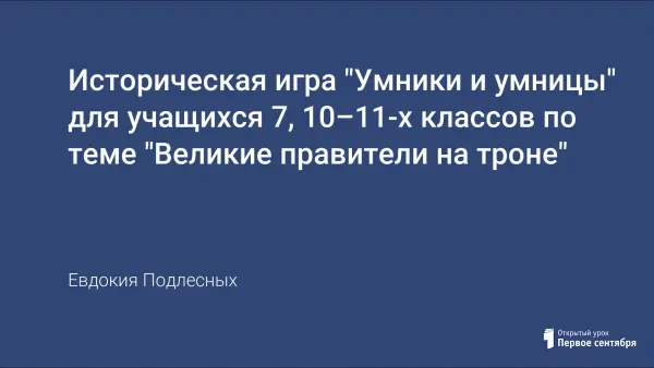 Материал занятия может быть использован учителями истории в 7, 10-11-х классах как для проведения уроков по этим темам, так и для подготовки к экзаменам в режиме ЕГЭ в 9—11-х классах. Многолетняя практика использования игры "Умники и умницы" показала эффективность подачи материала в такой форме.