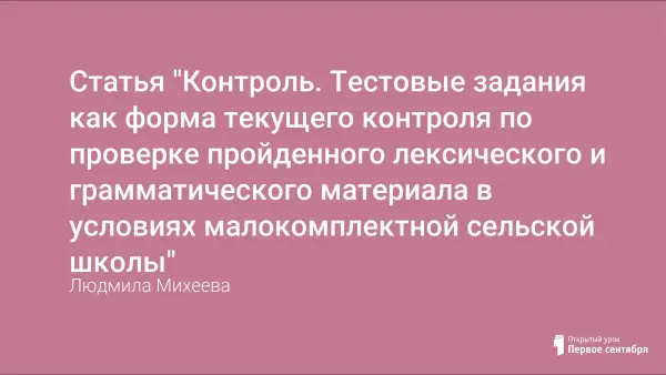 Работа затрагивает проблемы контроля; оптимизации сети сельских школ; проблемы малой накопляемости учащихся в сельской школе. Преподавание иностранного языка в малокомплектной сельской школе: проблемы текущего контроля. О важности организации самостоятельной работы учащихся.