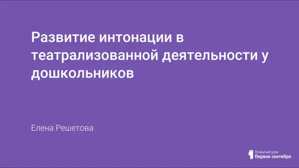 Одним из компонентов речевого развития детей является умение правильно пользоваться интонационными средствами выразительности. Раскрывается понятие интонации и одно из средств развития интонации - театрализованная деятельность, ее возможности, методы и приемы, а также поэтапная работа с детьми.