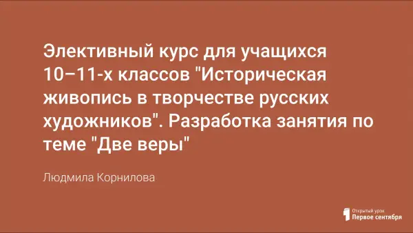 Данное занятие помогает подвести учащихся к пониманию причин и сущности раскола в России в XVII в., выяснить, в чем проявилось противостояние между «священством» и «царством». Позволяет сделать вывод о том, что противостояние Никона и Алексея Михайловича является последним открытым конфликтом Церкви с государственной властью, после которого речь идет лишь о степени подчиненности Церкви светским властям.